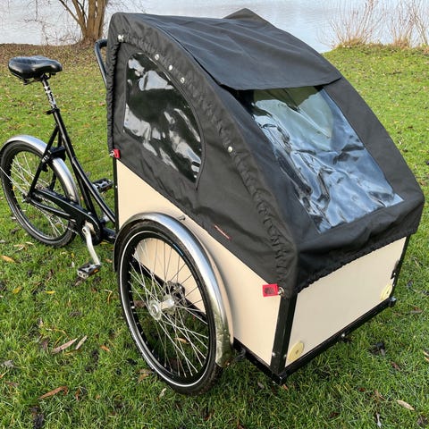 Kildemoes Andre ladcykel til unisex brug. Cyklen har en ladkasse med beskyttende cover og plads til passagerer eller gods. Den er udstyret med styr med gearskifte og bagagebærer.