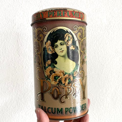 Vintage Poppy talkumdåse – smuk Art Nouveau metalæske
