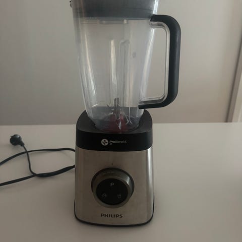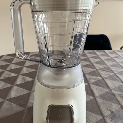 Kvalitets blender med glaskande, der har en kapacitet til blendning af forskellige ingredienser. Blenderen har en justerbar hastighedskontrol med funktioner til smoothie, is og pulse. Den har et ergonomisk design med et håndtag på kanden og en robust base i metal og plastik.