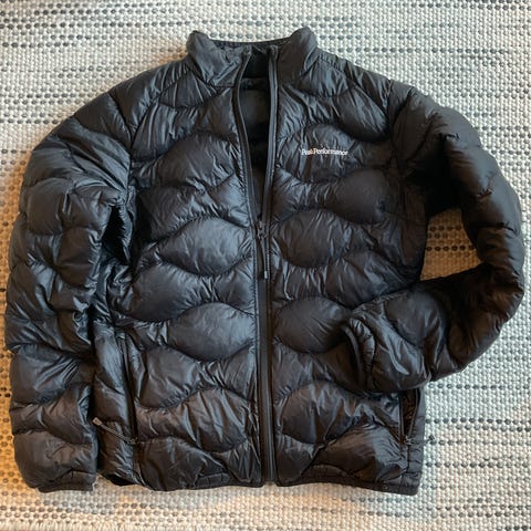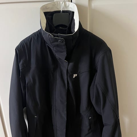 Peak Performance damejakke i størrelse L. Jakken er designet til sport og fritidsbrug med funktionelle detaljer. Farven er hovedsageligt lys med mørkere kontraster. Jakken har lynlåslommer og er velegnet til udendørs aktiviteter. Det er ikke 300 kr for det hele, stk pris.