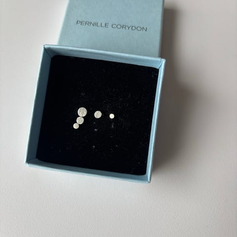 Pernille Corydon sølv ørestikker med rød emalje. Bredde: lidt under 1 cm. Ingen synlige fejl. Brugt, men gode. OBS! Jeg har små øreflipper.