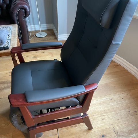 Pæn og velholdt farstrup stol med el betjent ryglæn og fodskammel , ( nypris 23,000 kr)