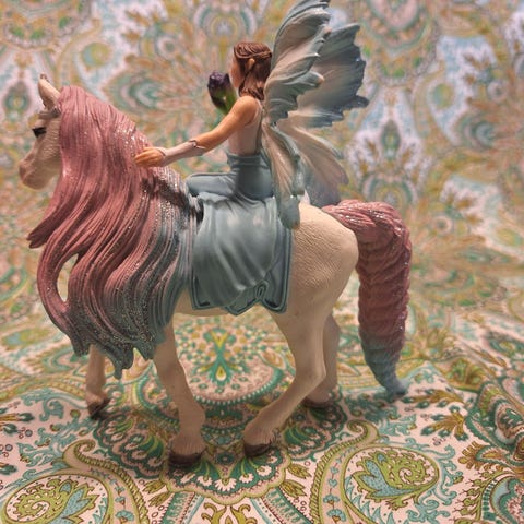 Schleich fe hus er formet som en blomst med udtrækkelige vinger, der åbner til en miniatureverden med figurer og tilbehør. Legetøjet er designet til børn og indeholder detaljerede figurer i forskellige farver, herunder en fe og dyr. Materialet er holdbart plastik, og legetøjet er egnet til kreativ leg.