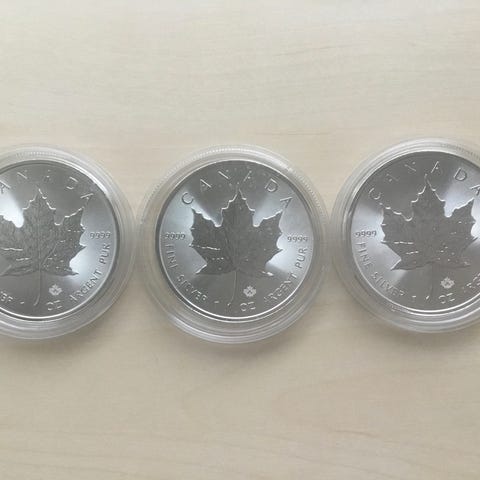 3 stk 1 oz sølv mønter i 3oz barr i original indpakning og aldrig været åbnet.