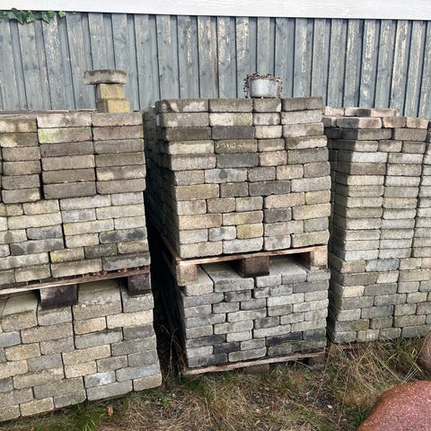 Stenene er stablet på paller og er lige til at afhente med vognmand eller lign.