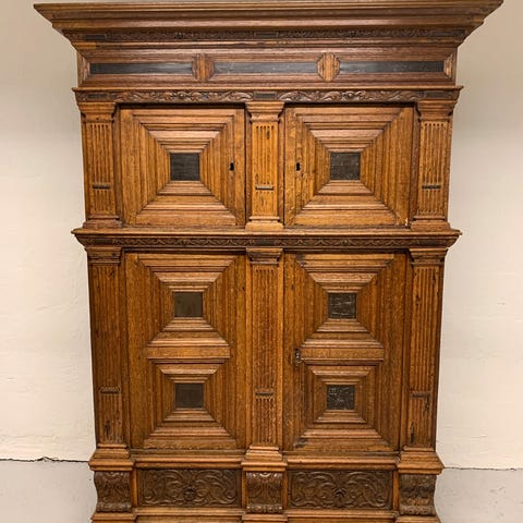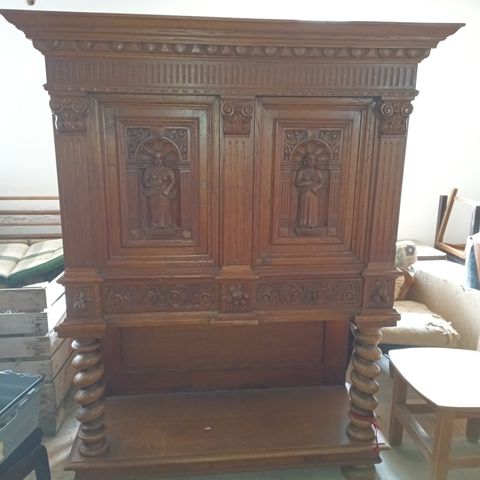 Smukt gammelt almueskab i massivt egetræ.