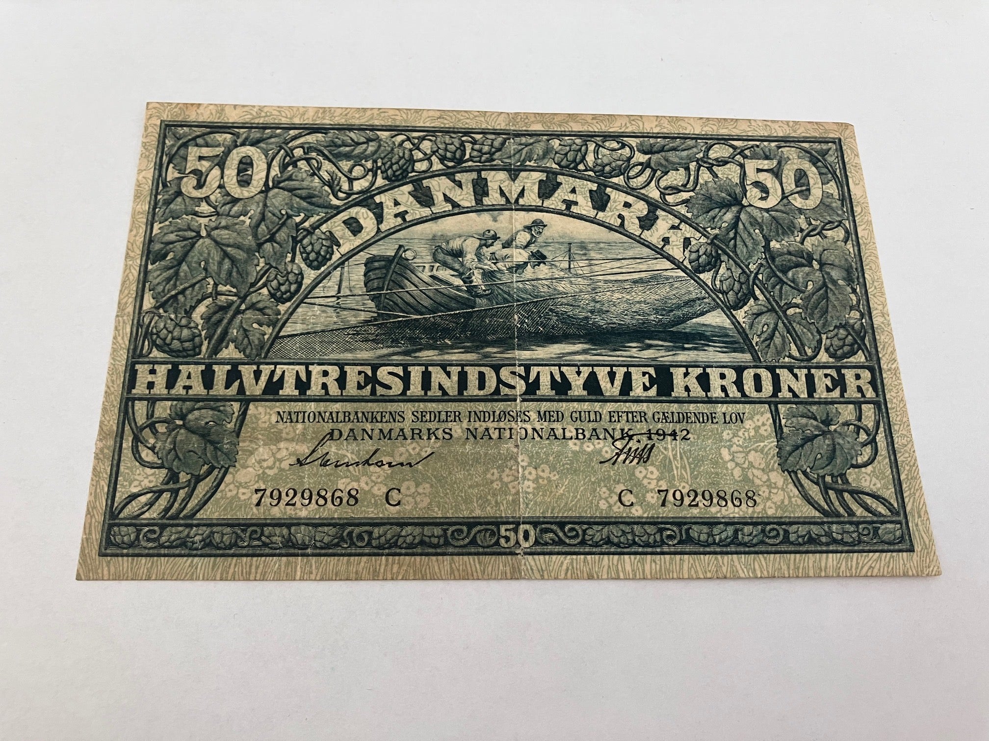 50 Kroner 1942 C - Folder og slid nederst