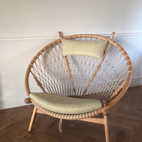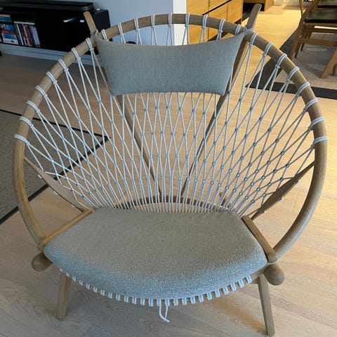 Wegner Cirkelstol - PP130 - købes. Sæbebehandlet Eg - inkl. nakke- og sædehynde i standardstof. Natur flaglinesnor.