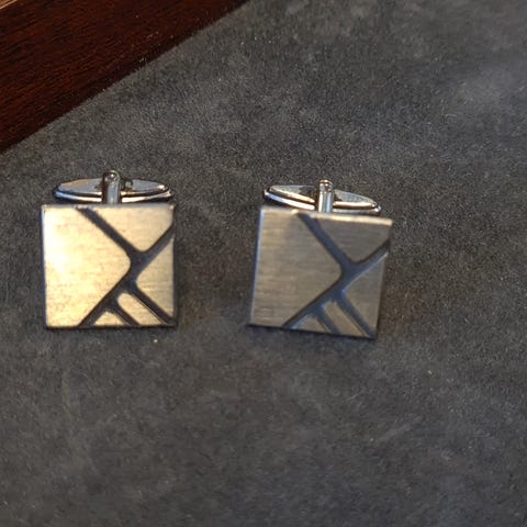 Manchetknapperne til herre i farven sølv, men som der står beskrevet ovenstående så er de lavet i stål. Stadig flotte og fremstår som nyt