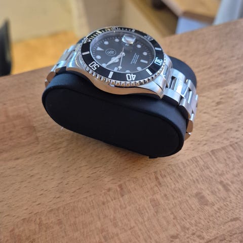 Design: Uret har et klassisk dykkerur-design med en roterende lynette og en sort urskive.