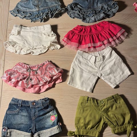 48 sæt med tøj, sko, tilbehør eller bamser i til priser mellem 15-125 kr.