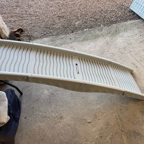 Foldbar rampe som sikrer at hunden kommer sikkert ind og ud af bilen.