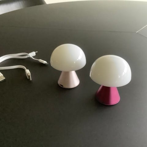 2 stk. smarte sølvfarvede batteridrevne bordlamper med fjernbetjening