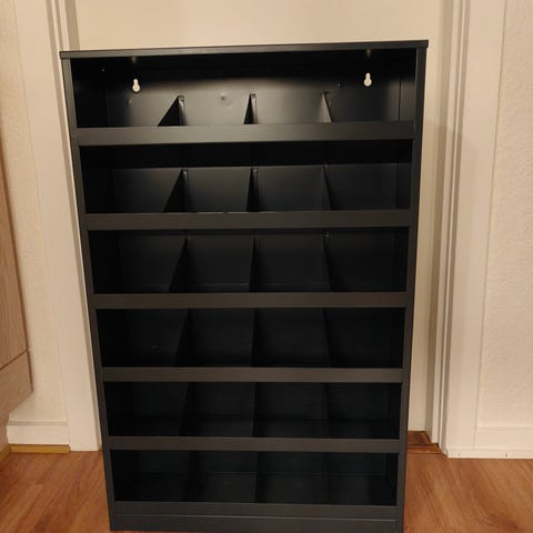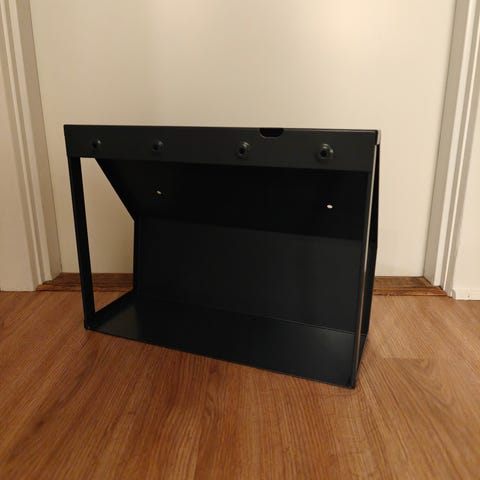 38 cm høj, 25.5 cm dyb, 10 cm bred.