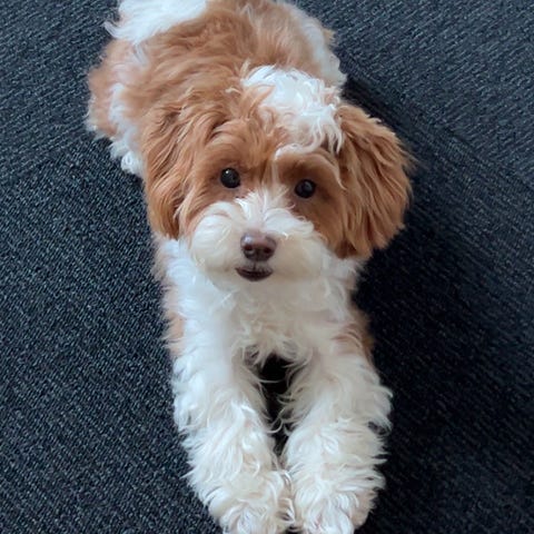 Vi træner også ,at han kan være "alene hjemme " i meget små bidder ,så han vender sig til at kunne være alene på sigt .