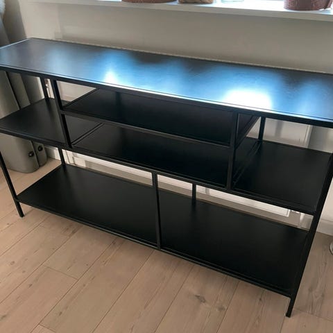 Reol fra Nordal i messing og glas i pæn stand. Giver et let og eksklusivt udtryk.