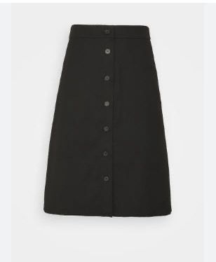 Modellen har et snit som går lige op og ned og lukkes i den ene side, med skjult lynlås. Modellen sidder i livet og er ellers super enkel i snittet og har desuden indsyet en sort underkjole, så den ikke er gennemsigtig hele vejen igennem. Bagpå er en slids på omkring 10 cm.