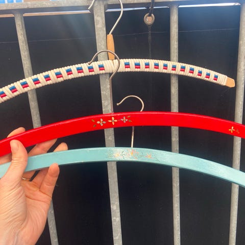 Retro Vintage Bøjler. Kan afhentes i Selde. Kan også sendes med DAO (køberen betaler portoen). Betaling via bankoverførelse. 3 stk. bøjler for 75 kr.