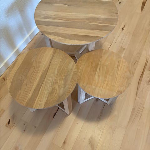 Tre sofaborde i massivt træ sælges som sæt.