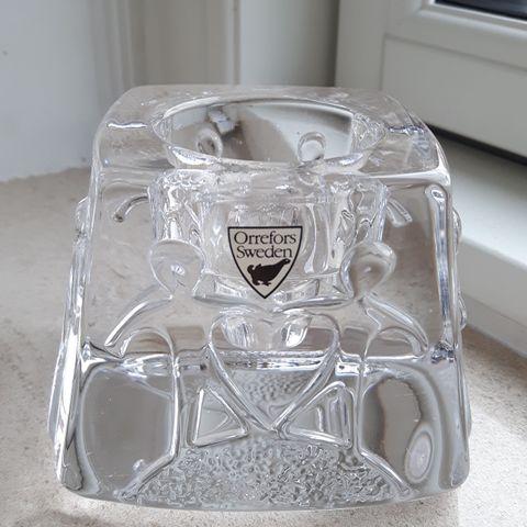 🇸🇪⛪️ ORREFORS Svensk Glaspuster, Sæt 2 stk, Lysestage Fyrfad Skulptur,