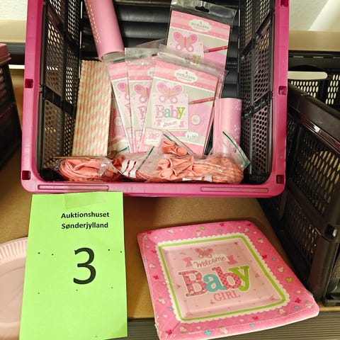 Artikler til Baby Shower m.m. Lys, bordpynt og gæstebog. Varerne stammer fra lukket webshop. Alle varer er ubrugte og af rigtig god kvalitet.