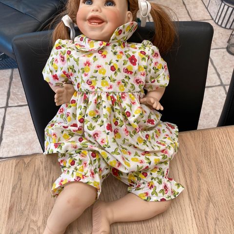 Dukke med sort langt hår. Dukkens længde er 40 cm og den fremstår som ny