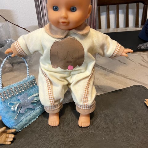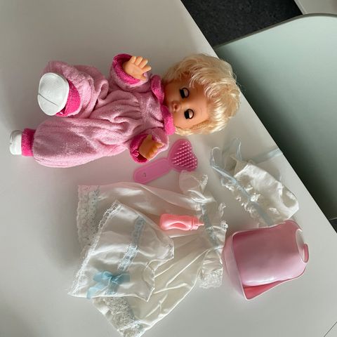 Baby dukke i længden 30 cm. Dukken fremstår som ny,