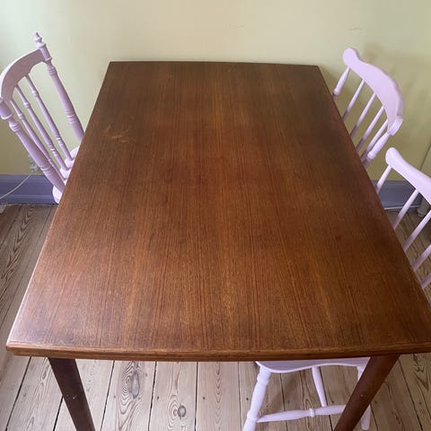 Smukt og smart spisebord i teaktræ og med hollandsk udtræk
