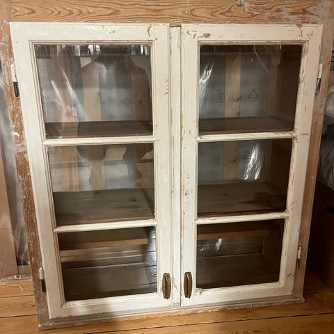 Smukt udført vitrineskab fra ca 1940. Har lige erhvervet det til en kunst udstilling, men fungerer desværre ikke sammen med resten af værkerne.