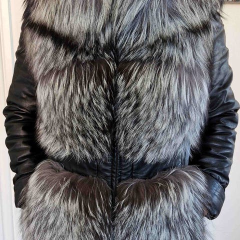 Flot jakke lavet af bomuld, læder og ægte pels.