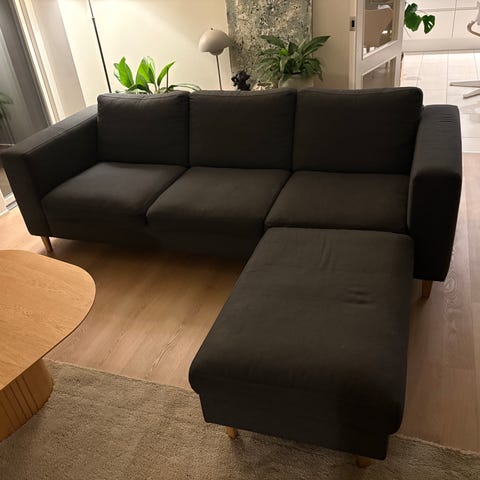 Jeg har ikke stof sofa mere, så den står bare og fylder. fejler intet, mener jeg købte den i Myhome