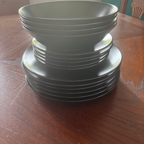 IKEA tallerken og skål sæt bestående af flere dele i sort farve. Sættet inkluderer både dybe skåle, frokost- og middagstallerkener. 6 stk af hver slags.
