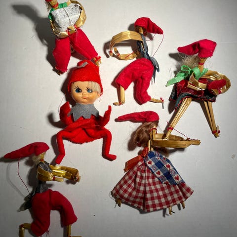 Gammelt julepynt med aldersspor . Lidt nus knæk og bøj. Sælges samlet Pris 100kr