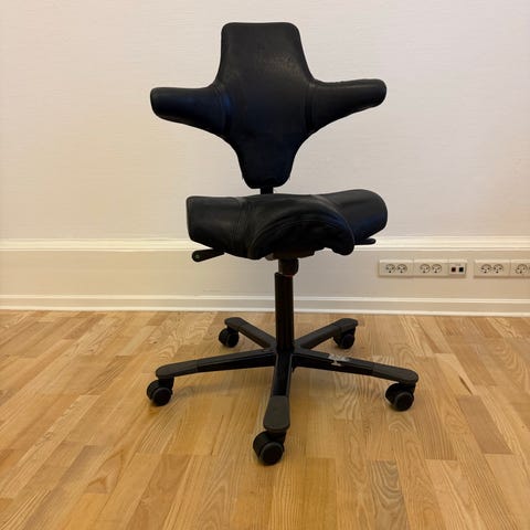 Fed kontorstol i brunt læder, den er i perfekt stand og du sidder godt, lidt slidtage på krom, kan justeres i højde og der kan slås vippefunktion til/fra kan evt.leveres i nærområdet