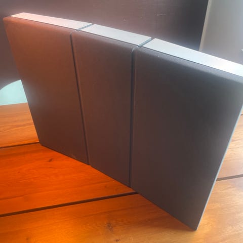 Højtalersæt. Vellydende og testet da jeg tog dem ud af kabinetterne. En af mellemtonerne skal repareres da den smuttede for mig ved udtagning.