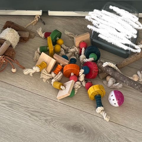 Nyt brusebad til fugle, nye bolde , ny gynge, som nye vand/ madskåle.
