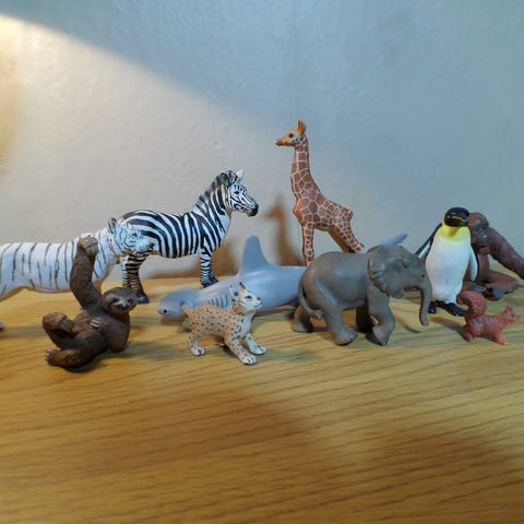 5 Figurer.. Alle er Schleich og i standen som ses på billedet. Figurerne sælges kun sammen i den pakke der er vist, Ingen løssalg. Sender med fast pris uanset vægt og antal af lots med DAO til 47kr.. Inkluderer: Hyæne, Edderkop, Hund, Gorilla, Kamæleon