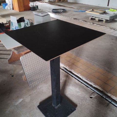 Bord i støbejern med to niveauer, rund bordplade og underhylde. Velegnet til udendørs brug som havebord eller til opbevaring.