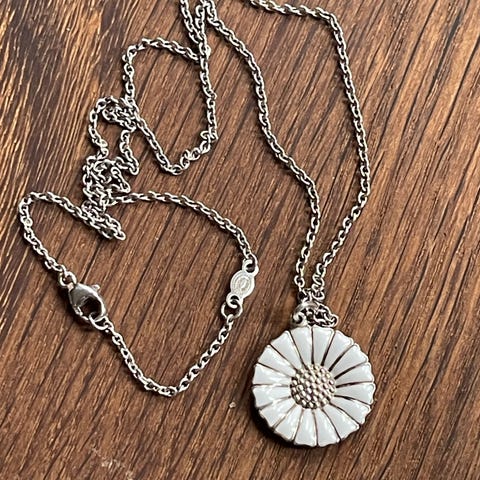 Forkæl dig selv eller giv en smuk julegave med denne smukke Georg Jensen daisy / Marguerit halskæde i 925s sølv. Kæden er ca. 44 cm.