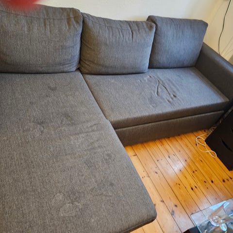 Sofa er købt for 3 år siden, og fejler ingenting. Sofaen kan foldes ud som sovesofa, og chaiselongen kan bruges til opbevaring. Mål på sofaen er: