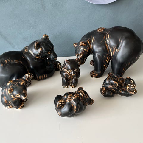 4 brune bjørne fra Royal Copenhagen, designet af Knud Kyhn