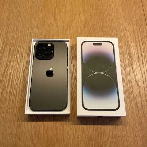 Apple iPhone 14 Pro smartphone med 7 cover og 2 panserglas, æske har altid haft cover og panserglas på