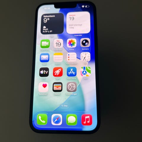 iPhone 13, 128 gb. Fejler ingenting, andet end et par meget små ridser, som ses på billederne. Batteri kapaciteten er på 100%.