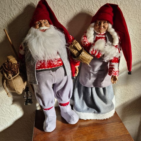Julekone og julemand - “hjemmelavet” - med de skønneste ansigtsudtryk.