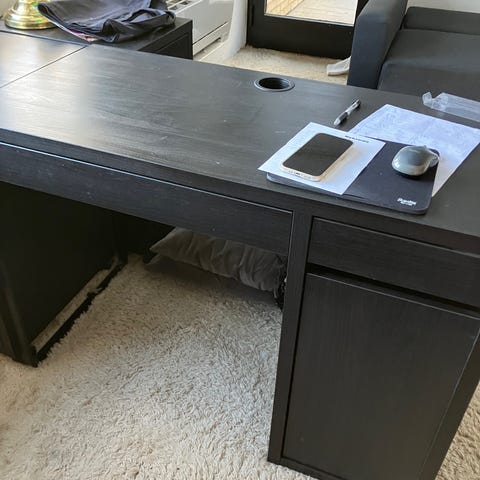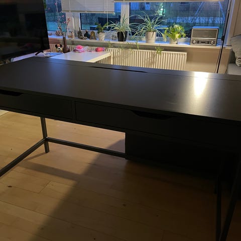 Flot skrivebord fra Ikea. Meget lidt brugt. Ingen synlige brugsspor. Sort med 2 skuffer.