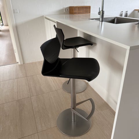 Kai barstolen er designet af Shin Azumi for italienske Lapalma. Den drejelige barstol kan justeres i højden ved hjælp af en pneumatisk fjeder.