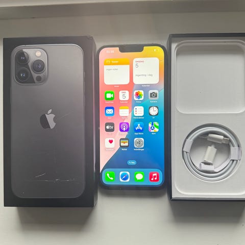 Iphone 13 Pro Max i guld med 128gb i super god stand batteritilstand på den er 100% den lige er blivet skiftet inkl æske og opladerkabel.