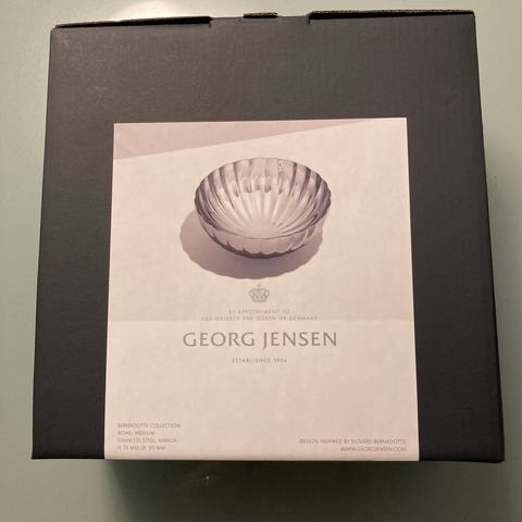 2 stk Georg Jensen Bernadotte Collection fad fremstillet i rustfrit stål med en spejlfinish.