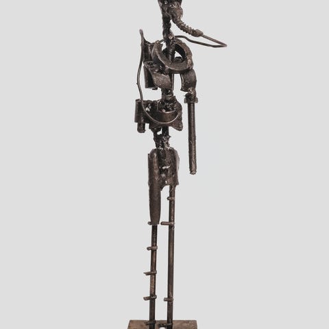 En udtryksfuld og dekorativ skulptur med kunsthistorisk reference, tydelig materialitet og stor visuel gennemslagskraft – et ægte statement-værk med både tyngde og fortælling.