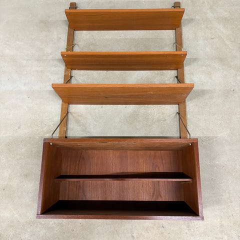 Væghængt reol i teaktræ, teak, teaktræs vægreol,